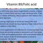 Reduced risk of neural tube defects (spina bifida), along with possible role of choline (B vitamin) Decreased homocysteine level for reduced risk of Down syndrome. Decreased risk of fetal loss. Decreased risk of cardiac malformation. Decreased risk of small birth size. Decreased risk of orofacial clefts (along with vitamins B1, B3, B6, E, and zinc) Prevention of one form of anemia. 400 mcg of folic acid and improved eating habits are recommended to prevent anemia.