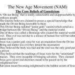 Not a well-defined group or position, but rather an ambiguous, amorphous movement (both inside and outside the church) Dualism between matter (evil) and spirit (good) Human beings are imprisoned spirits. Material world created by a fallen eon (e.g. Wisdom) The world was an abortion of the spirit. Liberation (i.e. salvation) possible if an enlightened messenger comes to waken us up from our dream The messenger brings secret knowledge (gnosis) that is necessary for salvation.